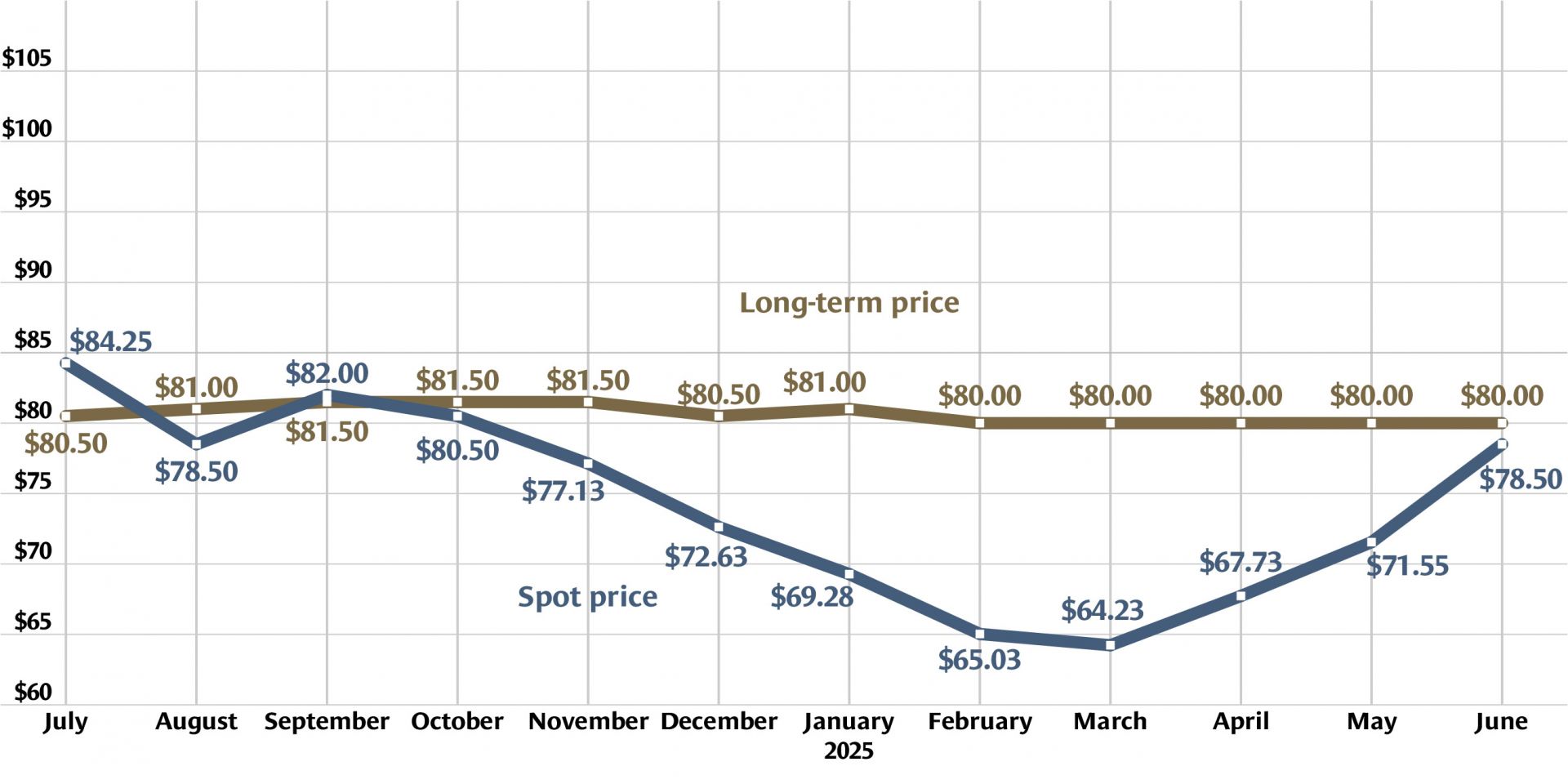 Uranium provider Cameco has calculated an end-of-June spot price of $78.50 for uranium—a substantial jump from $71.55 the previous month. Cameco continues to list a long-term price of $80.00, a price that has remained unchanged since February.