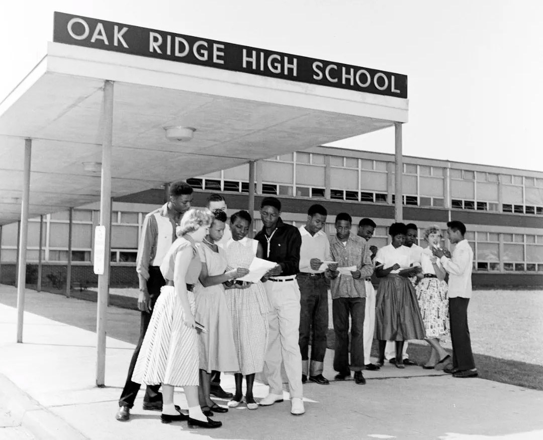 In a historic photo, students gather at the Oak Ridge high school in Tennessee. (Photo: DOE)