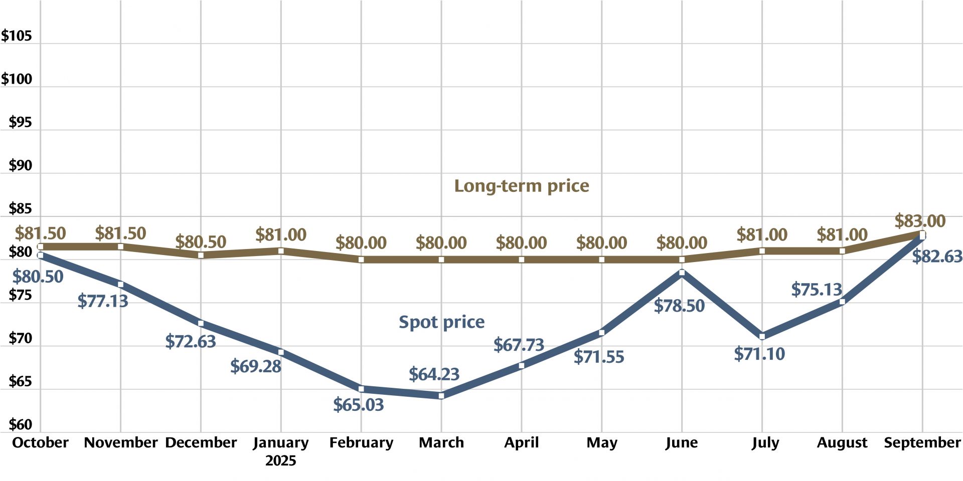 Canadian uranium provider Cameco has calculated an end-of-September spot price for uranium of $82.63 per pound—the highest mark of 2025. The lowest spot price listed all year by Cameco was $64.23 per pound at the end of March, while the previous high was $78.50 per pound at the end of June.