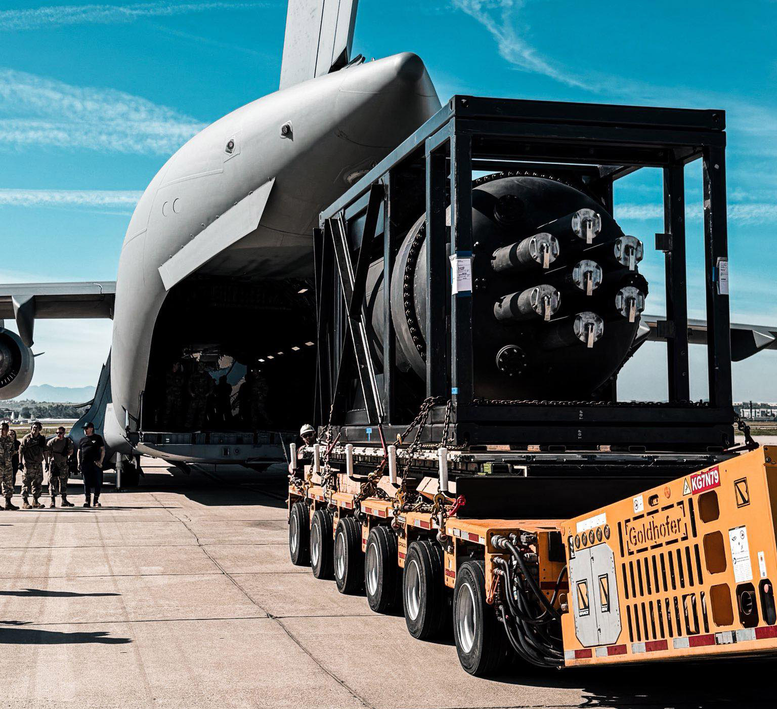 Valar's Ward250 microreactor being loaded, without fuel, onto a C-17 aircraft. (Photo: Valar Atomics)