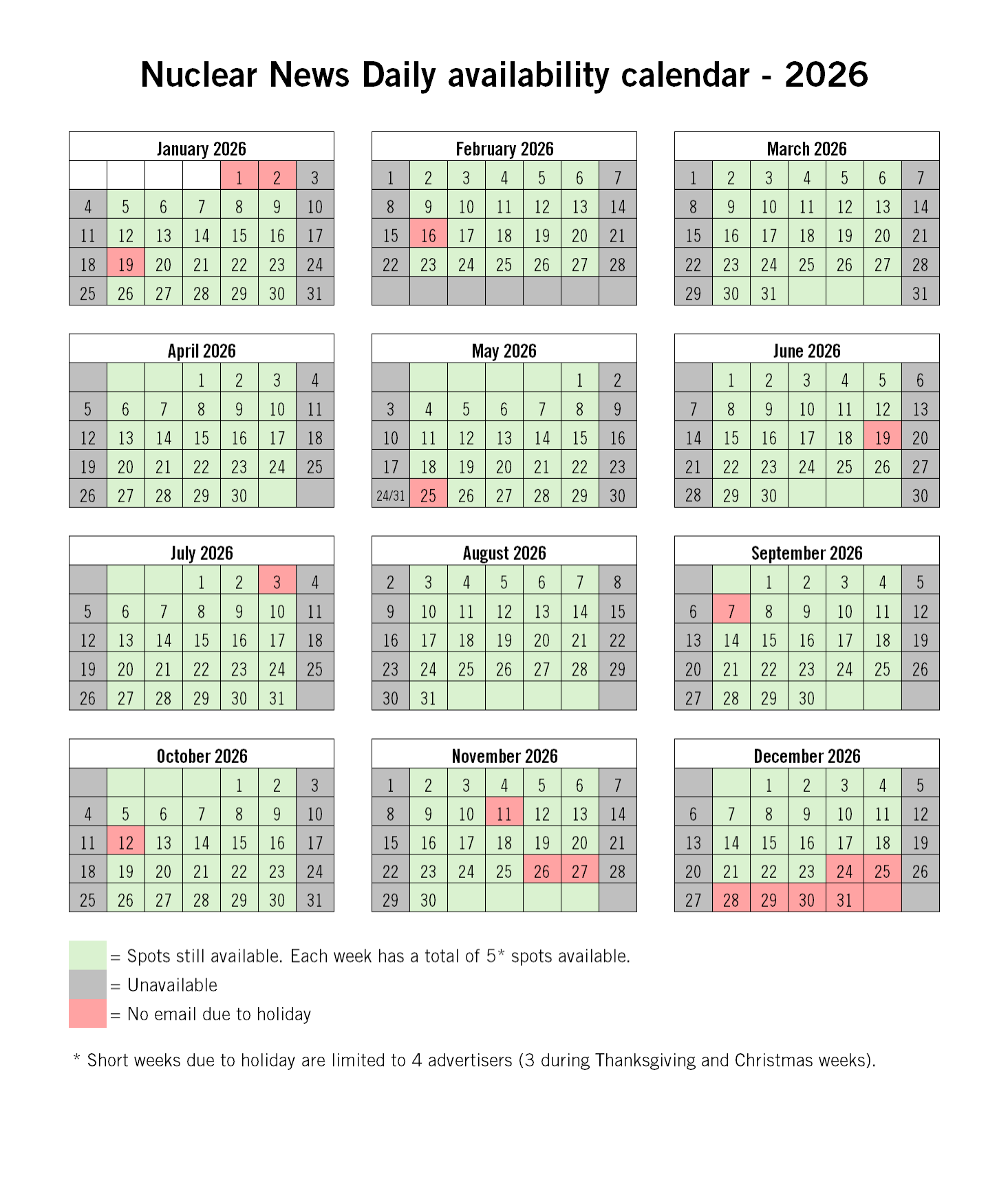 View 2026 Nuclear News Daily Availability Calendar