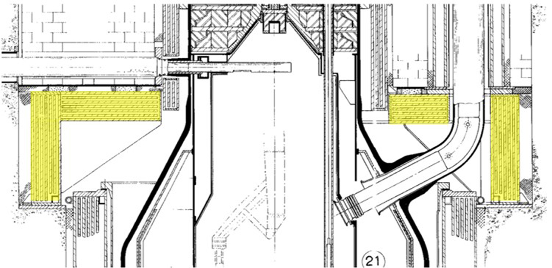Trawsfynydd is a double reactor site, with each reactor consisting of an approximately 8.5-m-high graphite core with support structure housed within an 18.5-m-diameter, 90-mm-thick spherical steel pressure vessel, with up to 300 mm of asbestos insulation covering the lower sections. The steel RPV is housed within a concrete bio-shield, whose walls are approximately 3 m thick with an approximately 4-m-thick pile cap.