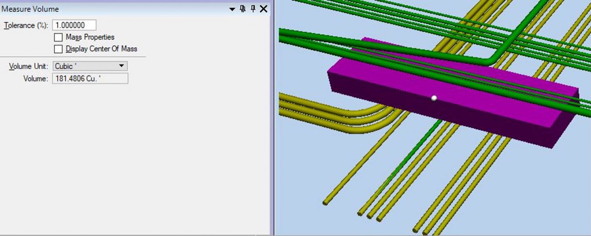 Using the model, the volumes of each cell’s concrete, piping, ACM, and steel can be obtained.
