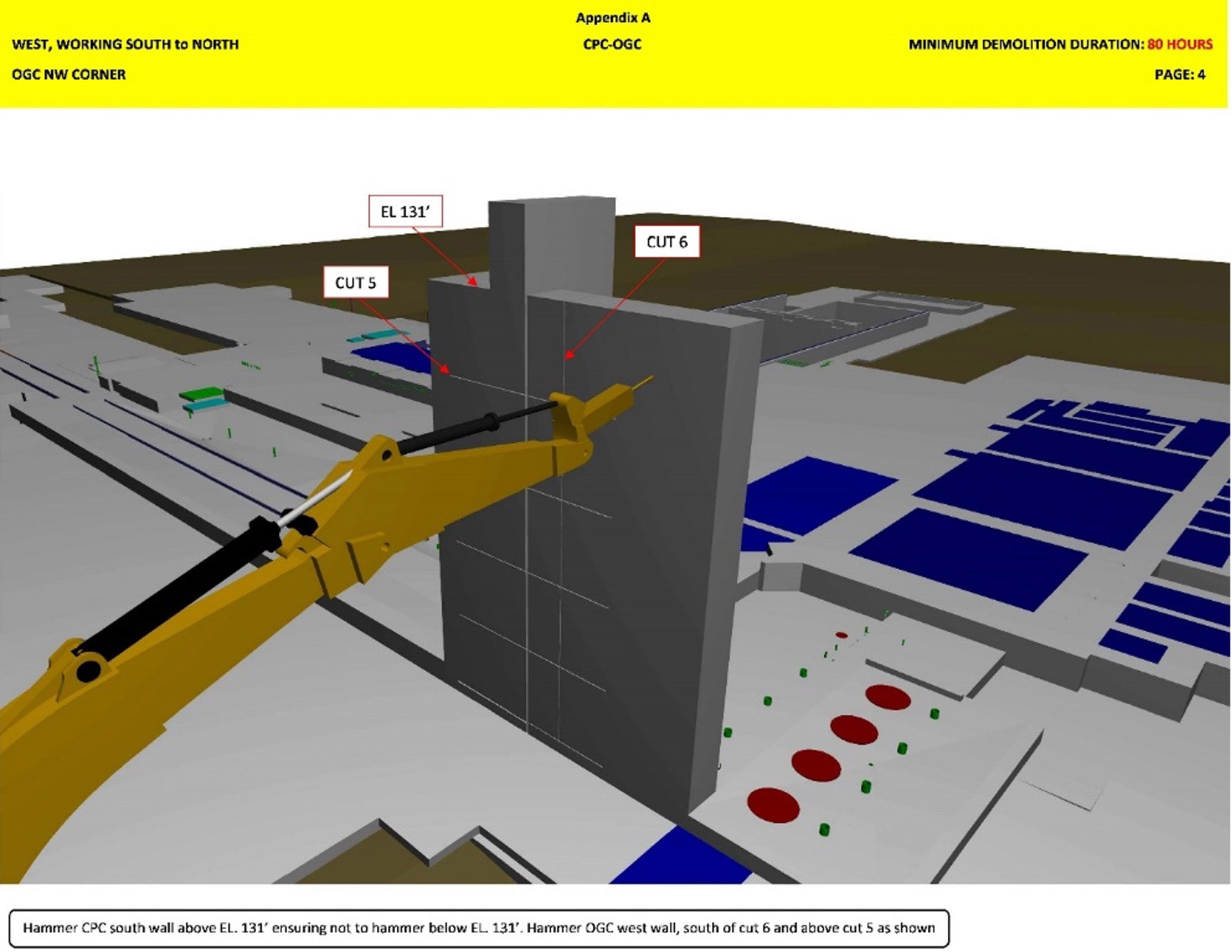 The individual layers within each cell model (Fig. 1) gave engineers and planners the ability to simulate the demolition sequence and create renderings outlining the potential hazards or specialty equipment that needed specific handling or packaging requirements. That information was then used to develop the demolition sequence and special instructions in the work instruction package.