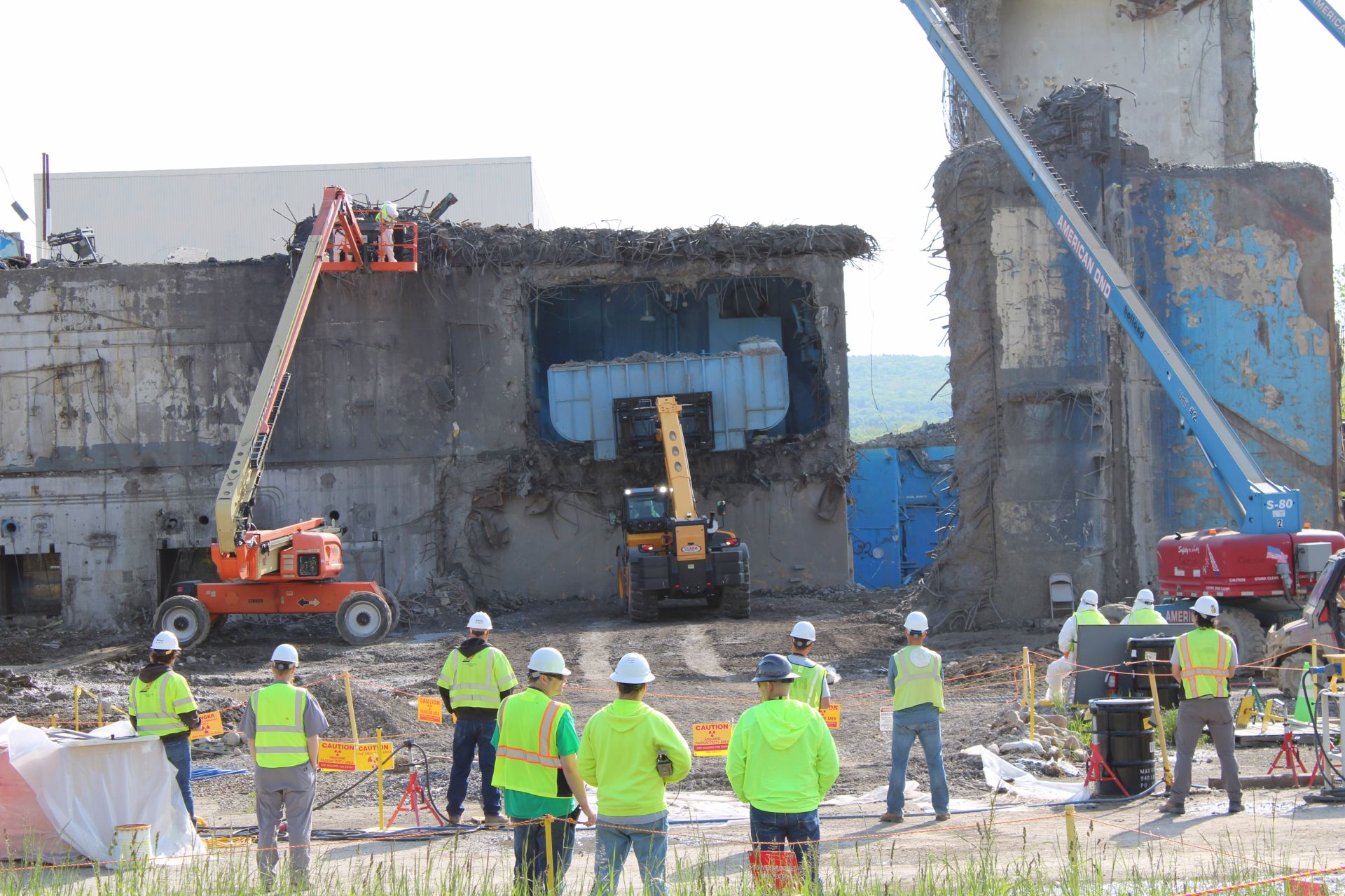 Renderings were used to enhance CHBWV’s communication efforts before and during the demolition. With the help of an off-site contractor, the renderings were used to create a five-minute animation of how the plant would be taken down safely and compliantly. CHBWV found that the animation proved to be an excellent communication tool as it combined audio, visuals, graphics, and text to help improve understanding and comprehension. Renderings were also used in public meeting presentations to show demolition progress.