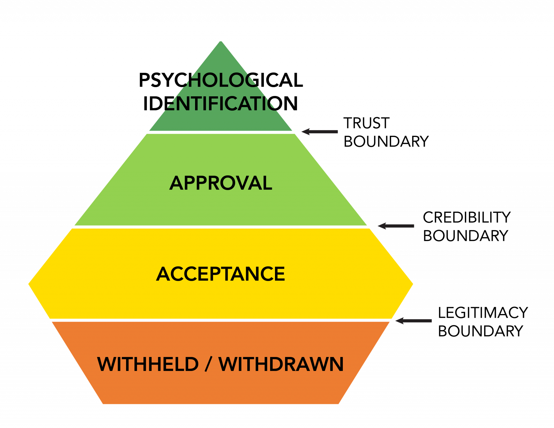 In a community-focused perspective, the pyramid model (Fig. 1) [2] presents a well-founded understanding of the process by which a community can come to accept and potentially support a proposed project. This view represents how the concept of a social license to operate is obtained. There is effort involved in attaining trust and reaching the top of the pyramid. The effort is highlighted through the actions identified by the survey respondents (e.g., invite, listen, don’t rush, don’t make assumptions, etc.).