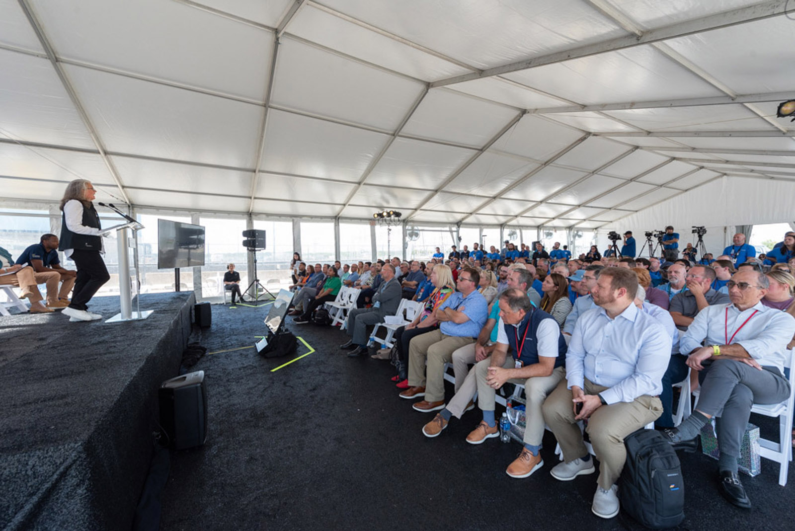 Constellation’s executive vice president and chief strategy and growth officer, Kathleen Barrón, speaks to attendees at the Clinton site celebration on August 26. (Photo: Constellation)