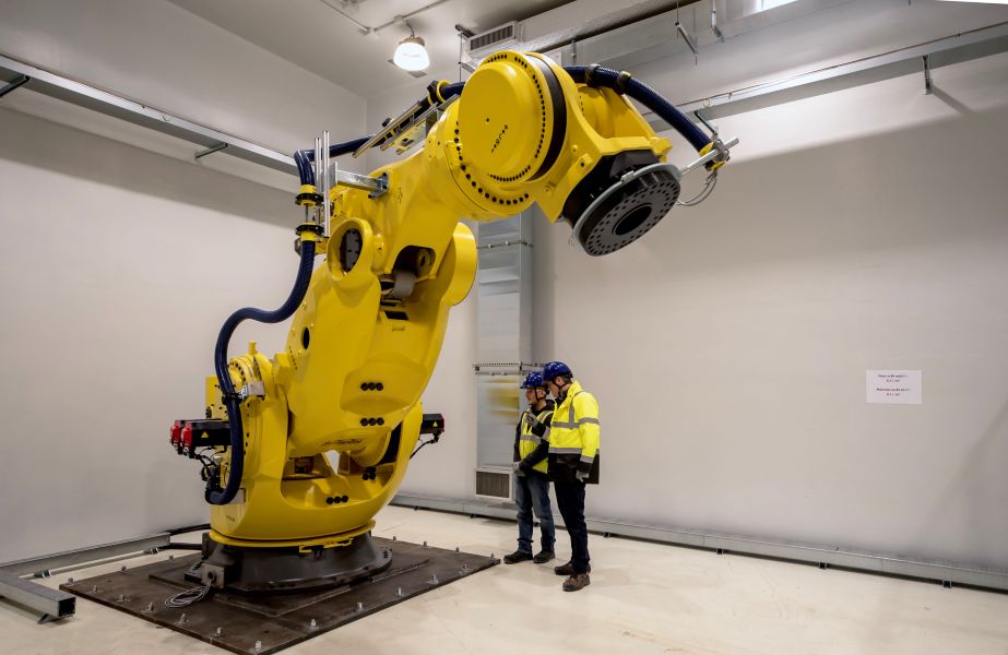 ITER employees stand by Godzilla, the most powerful commercially available industrial robot available. (Photo: ITER)