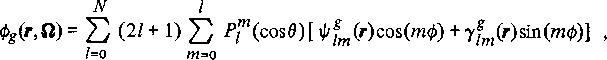 A solution of the multigroup neutron transport equation in one, two, or three space dimensions is presented. The flux φg(r, Ω) at point r in direction for energy group g takes the form of an expansion in unnormalized spherical harmonics. Thus, where θ and φ are the axial and azimuthal angles of Ω, the associated Legendre polynomials, and N an arbitrary odd number. Using the various recurrence formulas for , a linked set of first-order differential equations in the moments results. Terms with odd 1 are eliminated yielding a second-order system to be solved by two methods. First, a finite difference formulation using an iterative procedure is given, and second, in XYZ and XY geometry, a finite element solution is presented. Results for a test problem using both methods are exhibited and compared.
