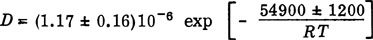 The lattice diffusion coefficient of 133Xe in cast uranium monocarbide was measured by postirradiation anneal experiments in the temperature range 1000 to 2000°C. The experimental results were analyzed by a small-time solution of Fick's law in which the effect of depletion of the surface layer due to recoil was incorporated in the initial distribution. The diffusion coefficient of specimens consisting of large grains (700 to 1000μ) was best approximated by in the range 1000 to 2000'C. Specimens with small grains (20 to 150μ) exhibited the same diffusion coefficient as the large grain samples above 1500°C. Below 1500°C, diffusivities in small-grained specimens varied widely, indicating dependence on grain size and, hence, the existence of appreciable grain-boundary diffusion.