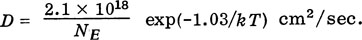 The effects of fast-neutron and electron-induced defects on the diffusion properties of lithium in silicon have been studied. Lithium-diffused diodes were irradiated and later drifted with reverse bias at a constant temperature. Results show that fast-neutron and 0.9-MeV electron induced vacancies provide sites for the precipitation of lithium. Moreover, the lithium vacancy precipitate behaves like a solute in equilibrium with ions and ionized vacancies. The analysis of the lithium vacancy precipitate in this manner is analogous to the analysis of slightly soluble salts in water. The lithium diffusion coefficient for silicon exposed to fast neutrons, NN = 1.1 to 2.7 × 1014 n/cm2, can be expressed The range of (T) in the above expression is from 300 to 410°K. In addition, the lithium diffusion coefficient for silicon exposed to 0.9-MeV electrons, NE = 5 × 1015 to 3.3 × 1016 electrons/cm2 can be represented by The range of (T) in the above expression is from 300 to 330°K. Relative radiation damage between neutron and electrons was found to be in reasonable agreement with predictions based on radiation damage theory.