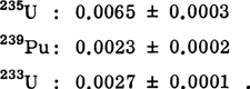 The delayed-neutron fractions for thermal fission of 235U, 239Pu, and 233U were measured and found to be The technique used to perform the measurements was intrinsically simple and involved making only relative measurements. The basic approach was to compare the neutron production rate of a thin fissile sample in a thermal-neutron beam with the delayed-neutron production after an abrupt termination of the beam. The work was greatly enhanced through the use of a modified long counter that was developed at the Los Alamos Scientific Laboratory. The results of this work are in essential agreement with the presently accepted values, which were reported in 1957 and were measured by using a different technique than that used here.