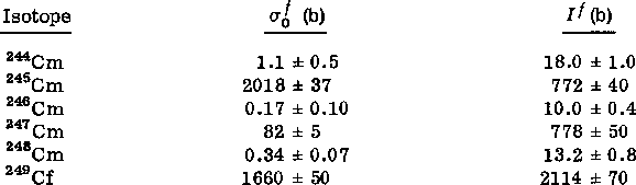 Thermal-neutron fission cross sections and fission resonance integrals were measured for 249Cf and five isotopes of curium with both dual fission chambers and plastic fission track recorders. Measurements were made in the thermal column and core of the SP research reactor. Cross sections were determined through direct comparison with the appropriate 235U fission cross sections, i.e., (effective) = 561.5 b and Iƒ = 268 b. For the resonance integral measurements, the low-energy cutoff has been adjusted to 0.625 eV. The measured cross sections are: