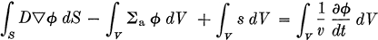 In reactor kinetics problems where it is desirable to take the space dependence of reactor flux into account, the time dependent diffusion equation must be solved. The solution of this equation on an analog computer requires a large amount of equipment. If the equation is written the form, where the volume integral of the divergence of neutron current has been replaced by the surface integral of the current, then a large reduction in the number of mesh points and consequently in the amount of equipment is possible. An example is given and compared with the flux distribution computed on a digital machine.