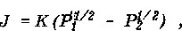 where J is the permeation flow rate, K is a constant, and P1 and P2 are the upstream and downstream gas pressures, respectively.